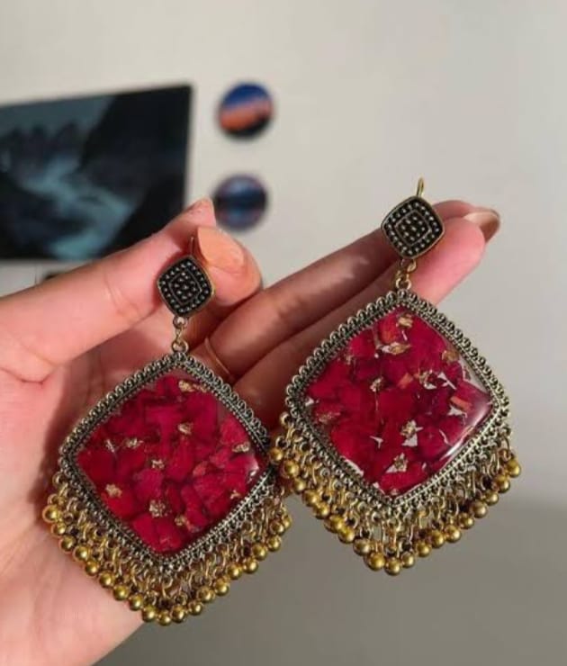 These delicate resin earrings encapsulate the timeless beauty of nature. Real flowers, carefully dried and preserved, are suspended in crystal-clear resin, capturing their vibrant colors and intricate details. The resin forms a durable, glass-like surface that not only protects the flowers but also magnifies their beauty, creating a stunning, ethereal effect. Each pair of earrings is a one-of-a-kind piece, with the natural variations in the flowers ensuring that no two are exactly alike. Lightweight and comfortable to wear, these earrings are perfect for adding a touch of natural elegance to any outfit. note: you can send your flowers for preservation of your memories.